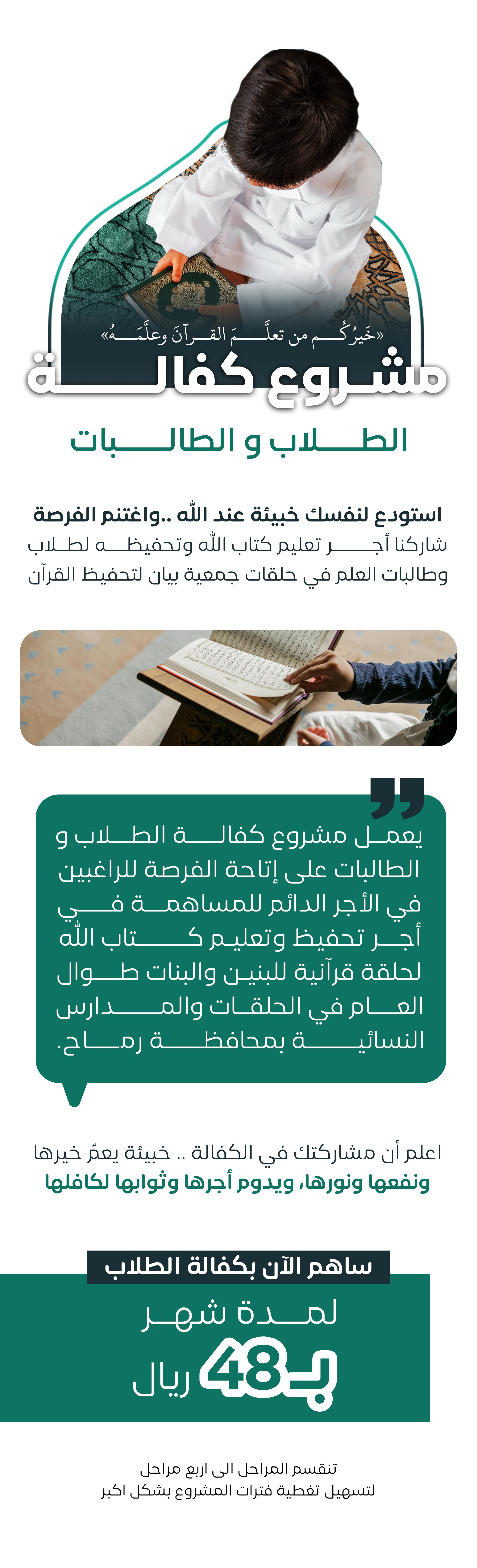 كفالة تعليم الطلاب و الطالبات القرآن الكريم لمدة شهر ب 48 ريال