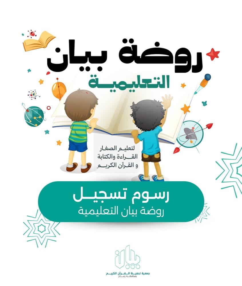 في روضة بيان التعليمية، نؤمن أن أولى خطوات النجاح تبدأ من الحروف الأولى… هنا يتعلم صغيرك القراءة والكتابة، ويتربى على كتاب الله الكريم، في بيئة آمنة ومحفزة، يقودها معلمون مبدعون.